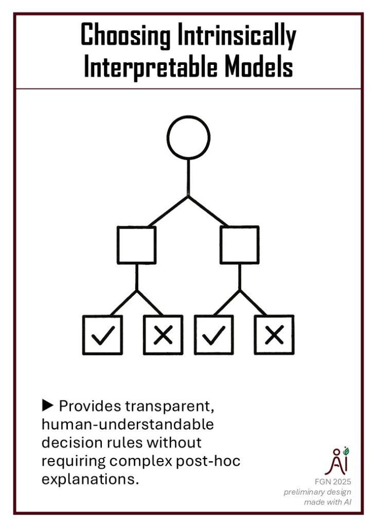 Unlike post-hoc explanations that attempt to explain black-box models after training, intrinsically interpretable models reveal their logic during inference by design. This enables users to trace how each input feature contributes to the output. It helps build trust for the model, especially in sensitive business contexts or application domains. Due to their transparent structure, intrinsically interpretable models are easier to debug. They may trade off some predictive accuracy compared to complex black-box models. On the other hand, in scenarios with little data, these models are often more robust due to their (usually) significantly lower number of parameters.